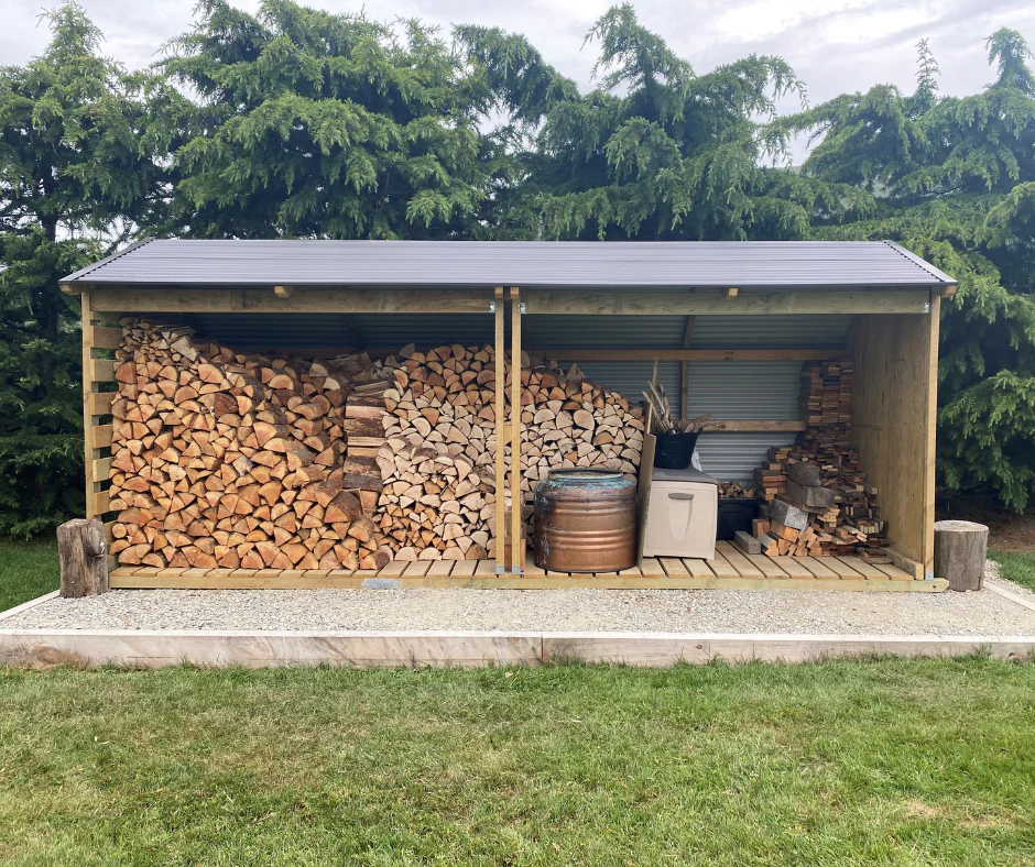 Great design with timber slat flooring & 1 wall that keeps your firewood well ventilated & dry. Can hold 27.55 Cubic Meters. (Other sizes available).